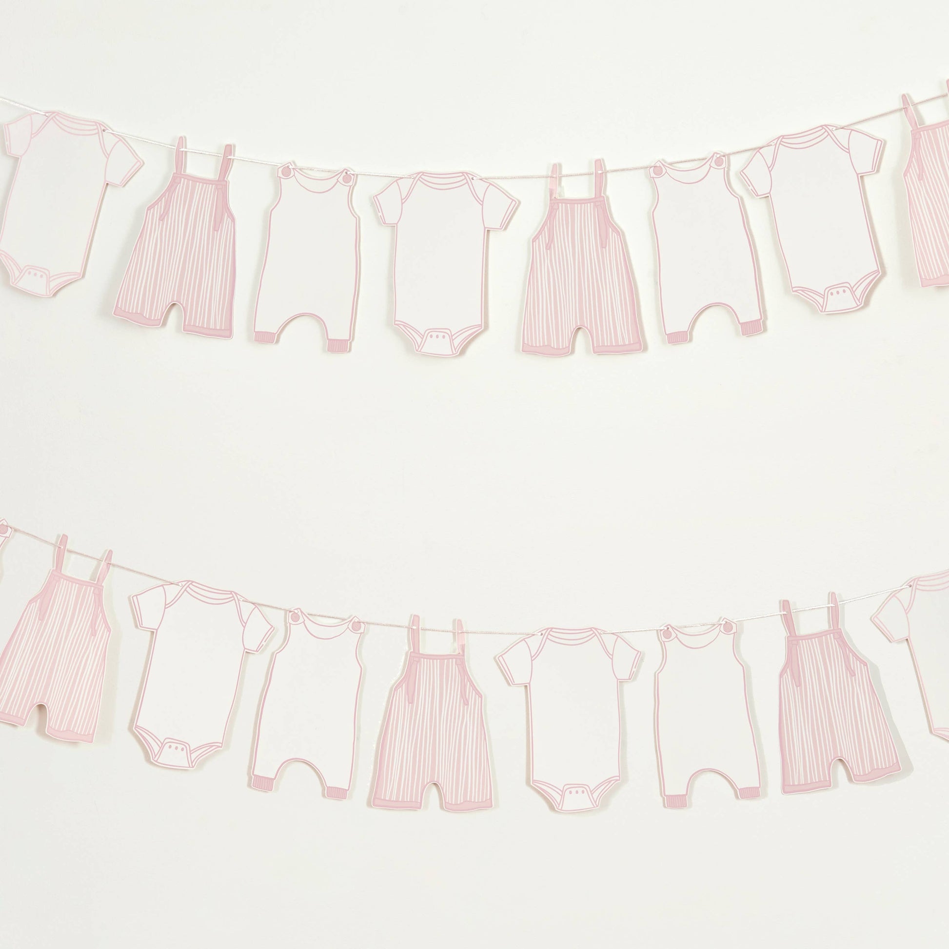 This babygrow garland is a gorgeous addition to your pink baby shower decorations!